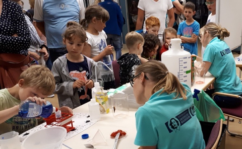 The 13th Long Night of Science took place on the 2nd of June 2018. The PhD students of the MGK 854 (Graduate College Module) taught the young researchers how to isolate DNA from strawberries under the motto "The Language of the Immune Cells". The children could then take home their own isolated strawberry DNA. The rush of visitors was unbroken again this year.
